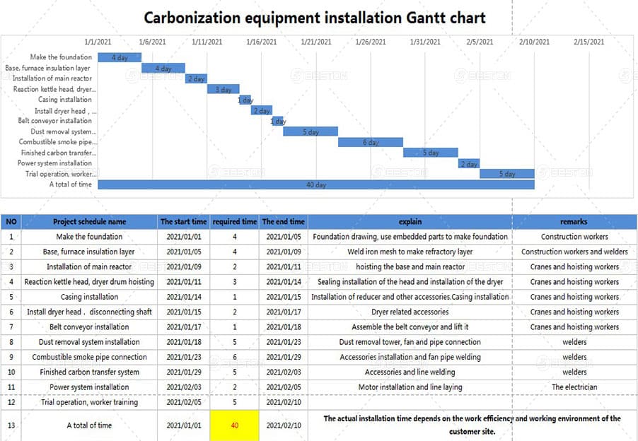 我們的碳化設備是臥式結構滾筒碳化爐,24小時連續運行,連續進料和連續出碳,從進料到出碳,稻殼碳化大約需要20分鐘左右,每天可碳化稻殼大約10-100噸。