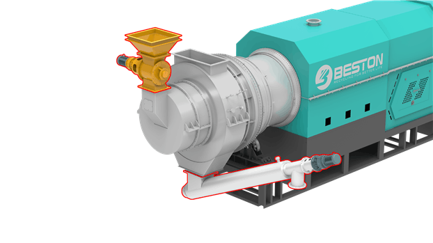 稻殼碳化設備在進料口和出碳口通過專門的設計實現設備運行狀態下的密封性,在設備運行狀態下原料持續進入碳化爐,碳化完成的物料持續通過出碳口出碳,連續式生產,每天處理原料20-120噸
